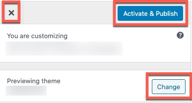We recommend clicking through your site in the live preview window so you can test all the pages and see if you like the new look and feel of your site. If you are happy with the preview then you can go live by clicking Activate & Publish if you are not happy click Change to preview another theme or simply click the ‘X‘ to go out of customization mode.